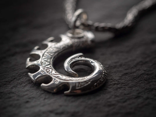 Nautilus Seahorse Guardian Sterling Silver Pendant with Handmade Byzantine Chain