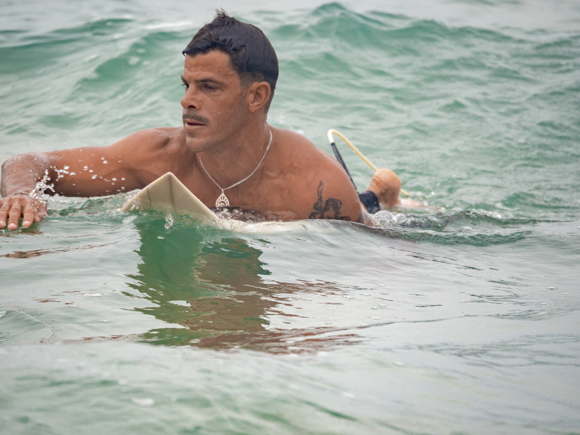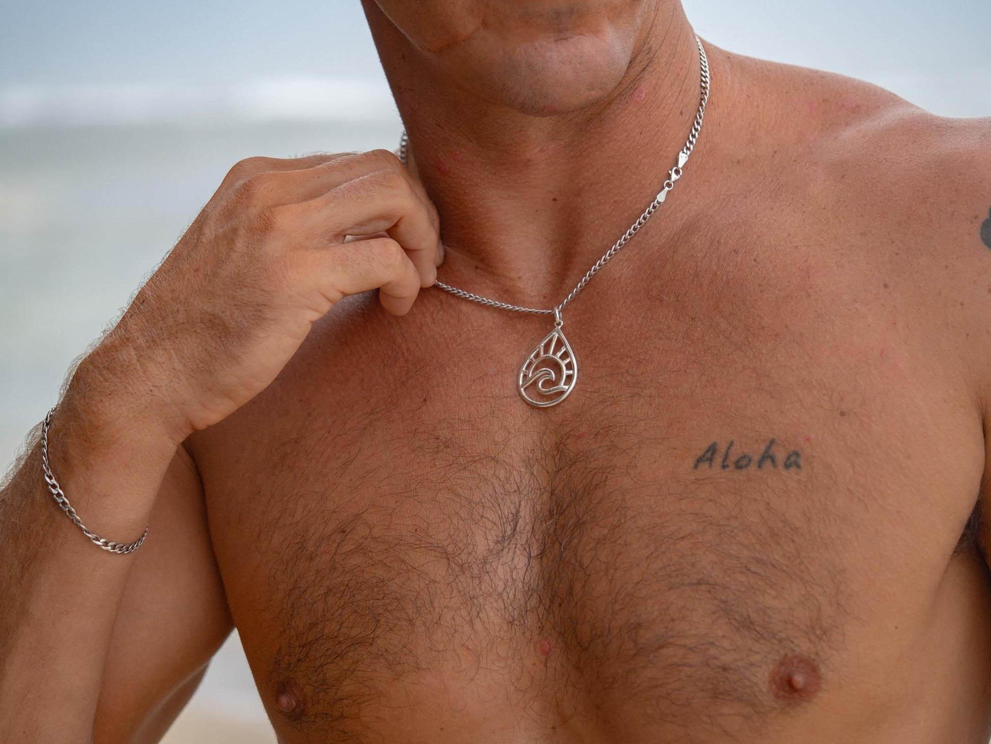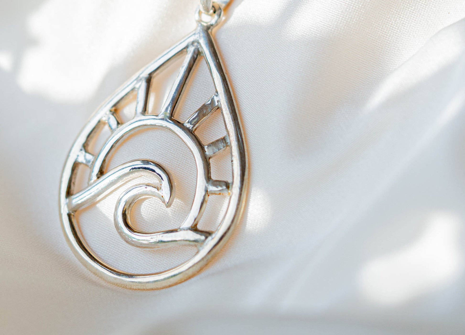 • Sterling silver pendant - Teardrop shape with engraved sun, moon, and wave motif