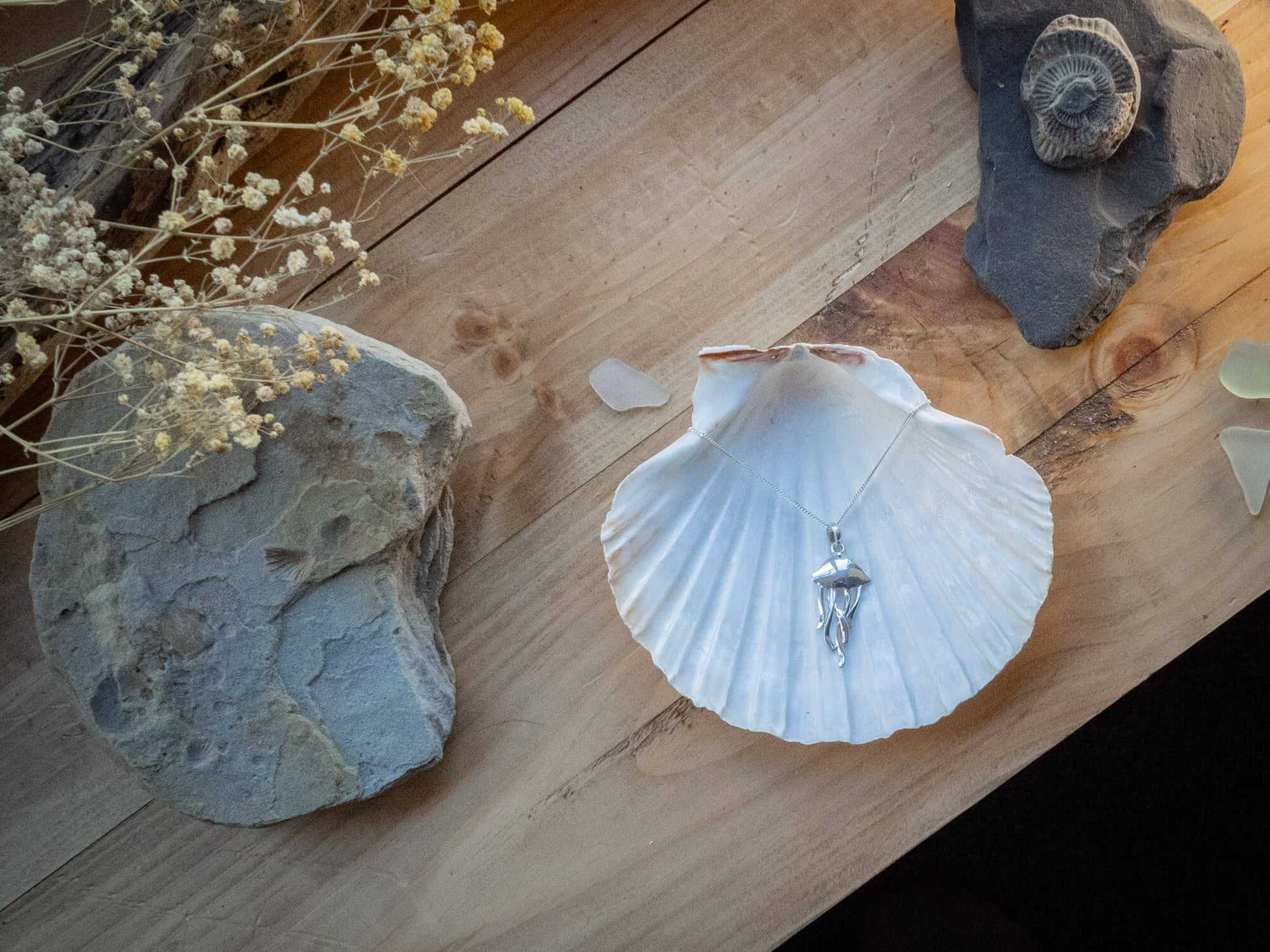 • Sterling silver jellyfish pendant – Handcrafted with flowing, organic form and integrated bail