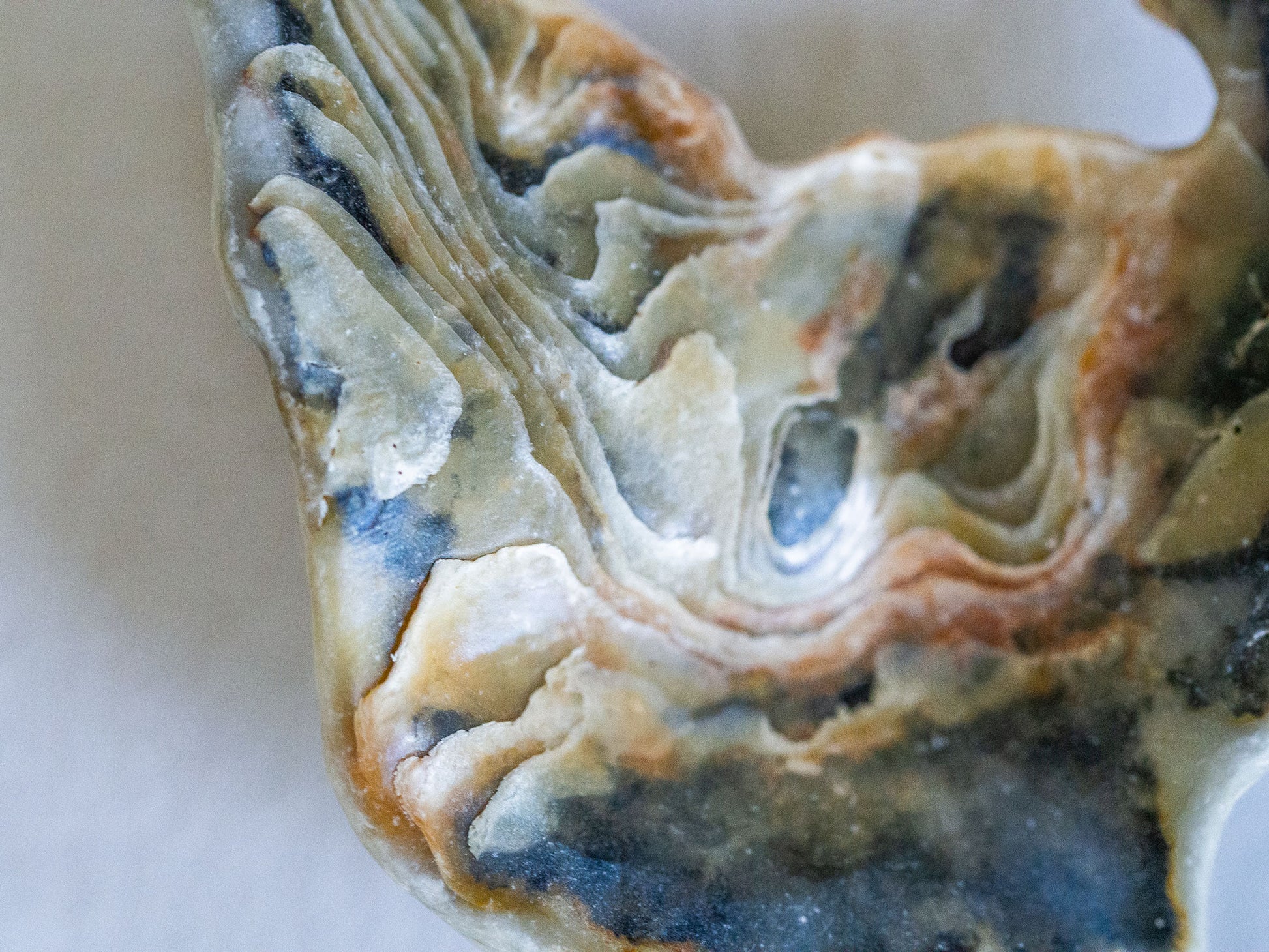 • Sculpted shell pendant - Natural hues of beige, tan, light brown, and grey with unique textural patterns