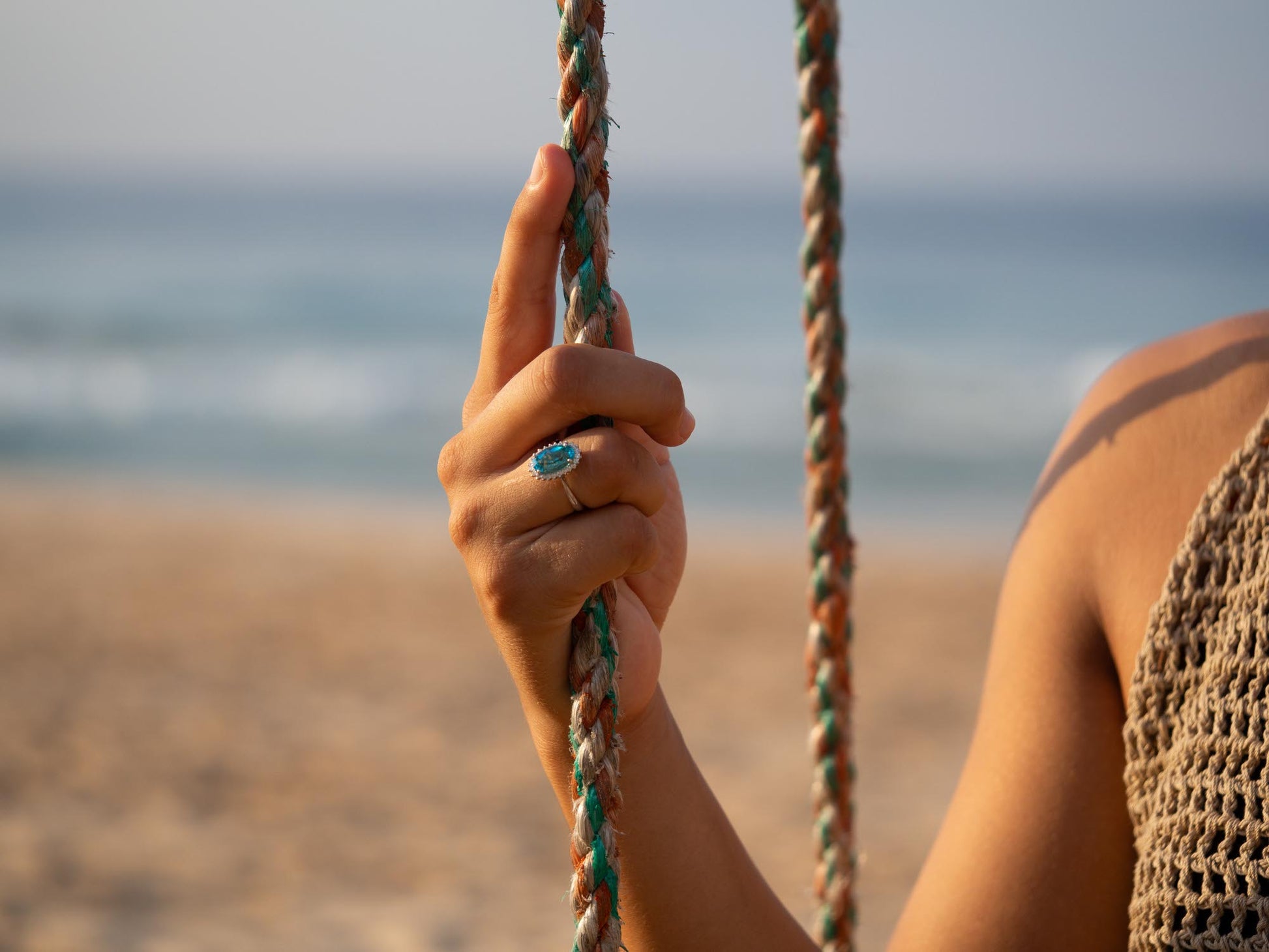 This ring captures the essence of the ocean with sea glass and American diamonds. The sea glass brings a peaceful coastal touch while the diamonds add sparkle to create a versatile and sustainable piece.