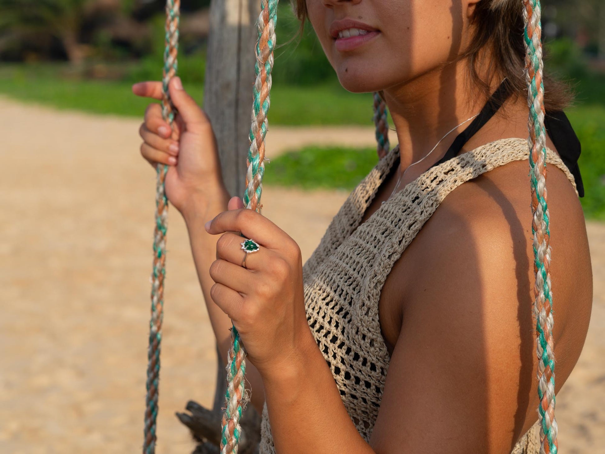 A beautifully designed ring that combines sea glass and lab-grown American diamonds for a sustainable and unique look. Embodying the beauty of the sea with a touch of modern elegance.