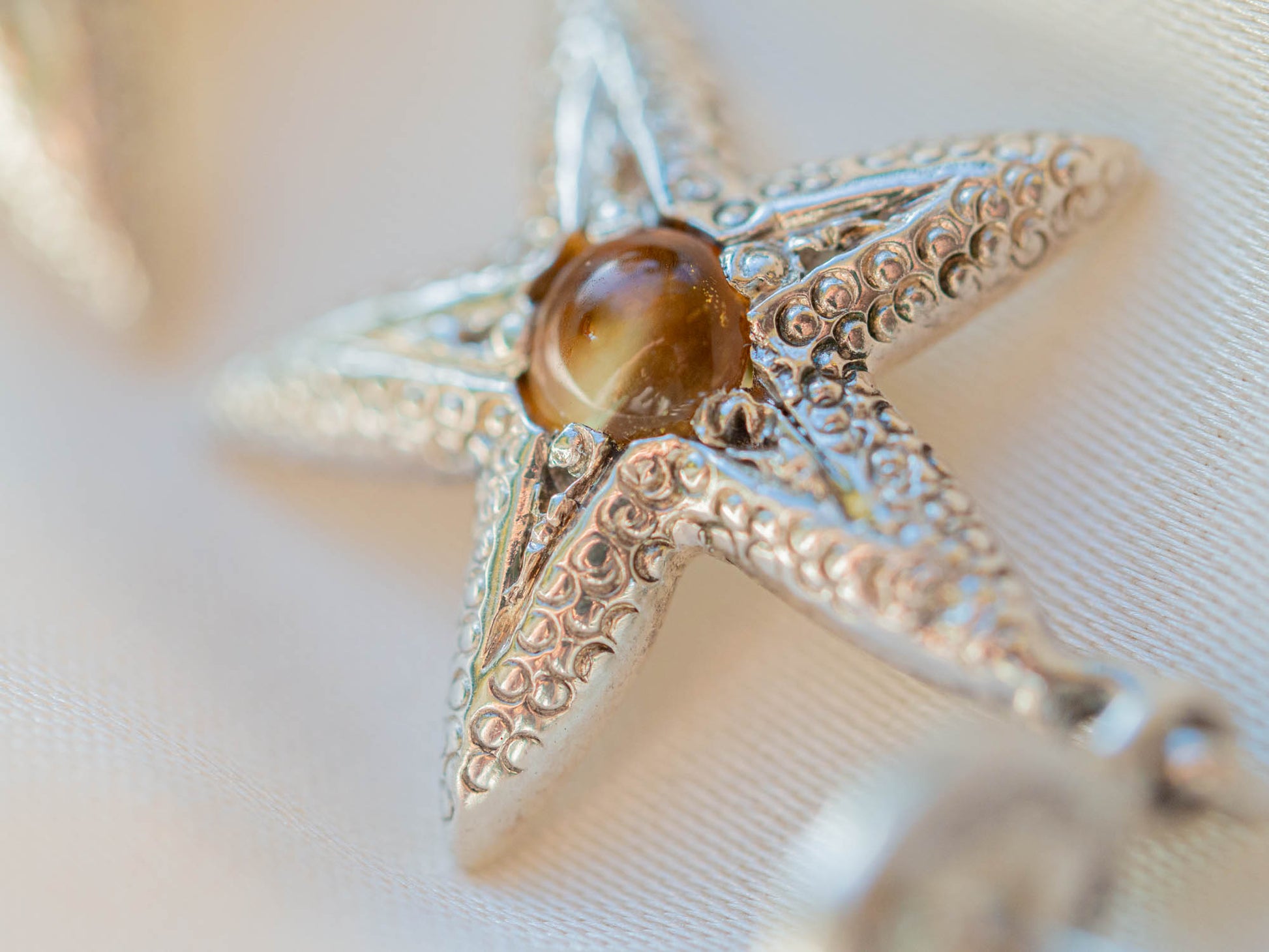 • Sterling silver Starfish-shaped earrings with a Citrine gemstone centre