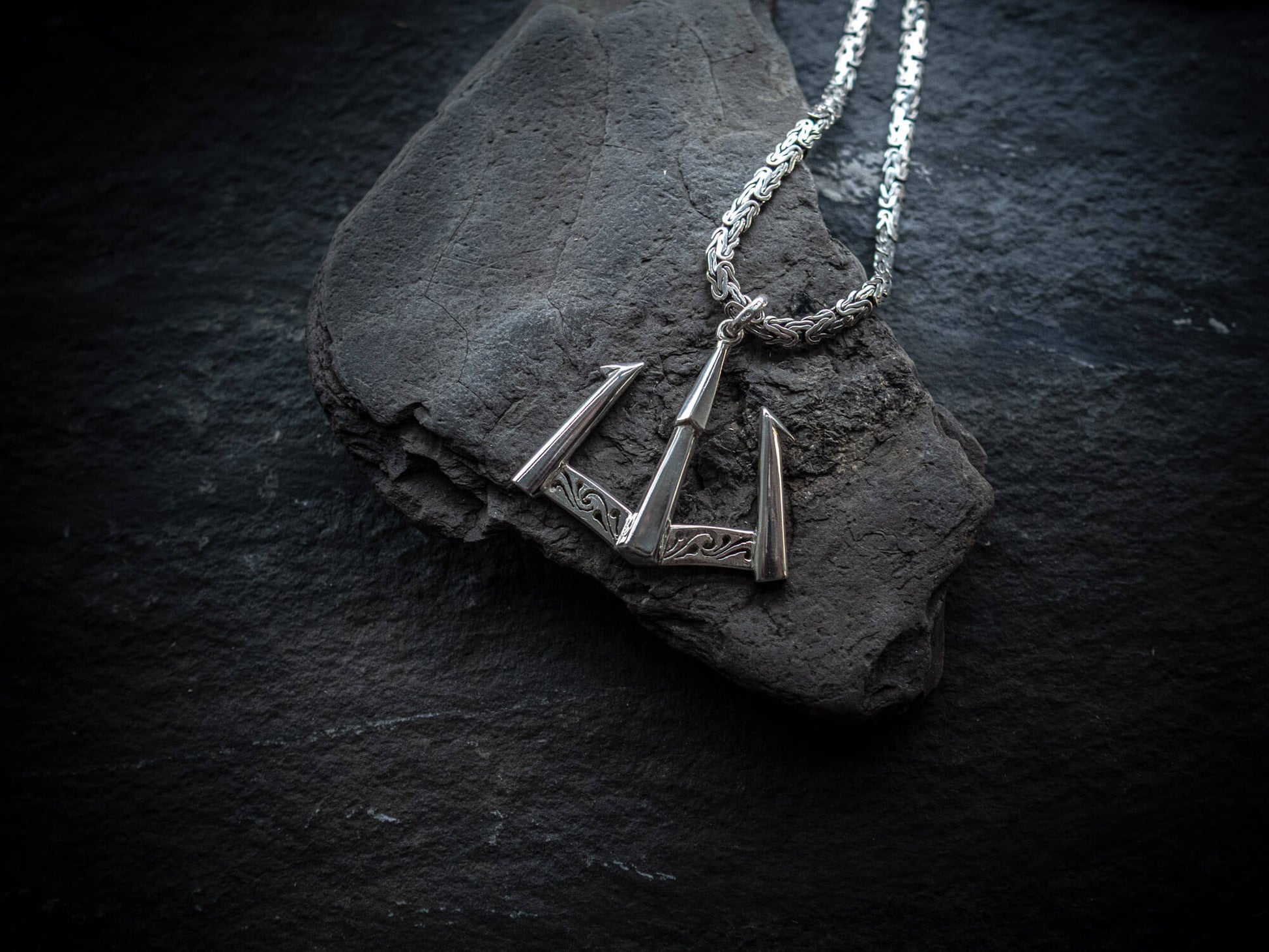 This Sterling Silver Poseidon Anchor Pendant is a powerful symbol for those drawn to the depths of the ocean and its ancient myths. Handcrafted by skilled Sri Lankan artisans, the piece features sharp architectural lines and finely hand-carved details that echo the movement and force of water.